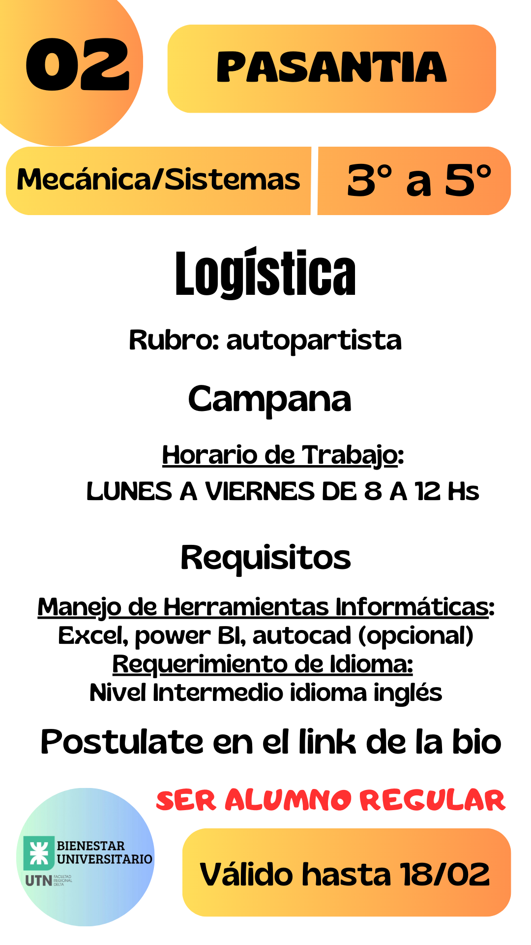 | Tareas a desarrollar: Análisis de datos y actualización de KPI mensuales, desarrollo de nuevos indicadores que el área requiera y generación de reportes, teniendo como objetivo la automatización y digitalización de los mismos. Soporte al área de Kaizen, Confección de distintos documentos. Confección de ventanas horarias de transporte y mejoras en las mismas. |